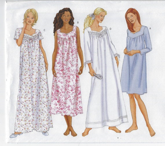 1990s Womens Romantic Victorian Style Nightgowns In 2 Lengths New Look Sewing Pattern 6163 S M L Xl Size 10 To 24 Bust 32 1 2 To 50 Ff Nightgown Pattern Night Gown Victorian Fashion